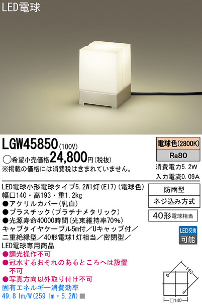 Panasonic LED ¥¨¥¯¥¹¥Æ¥ê¥¢¡¦¥¢¥¦¥È¥É¥¢ LGW45850