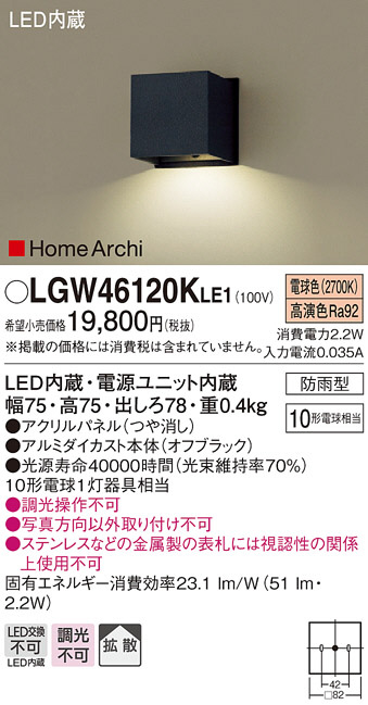 Panasonic ¥¨¥¯¥¹¥Æ¥ê¥¢ LGW46120KLE1