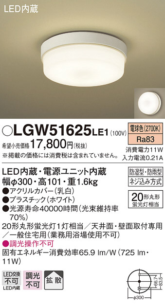 Panasonic LED ¥Ð¥¹¥ë¡¼¥à¥é¥¤¥È LGW51625LE1
