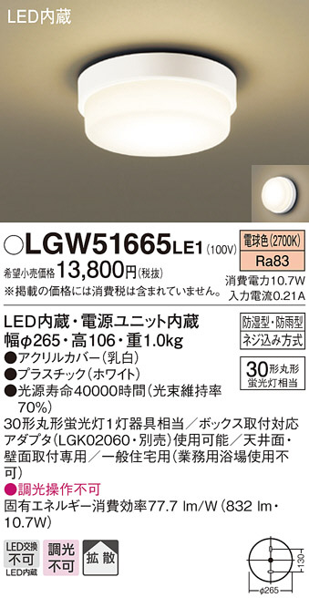 Panasonic LED ¥¨¥¯¥¹¥Æ¥ê¥¢¡¦¥¢¥¦¥È¥É¥¢ LGW51665LE1