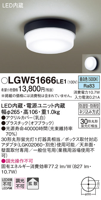 Panasonic LED ¥¨¥¯¥¹¥Æ¥ê¥¢¡¦¥¢¥¦¥È¥É¥¢ LGW51666LE1