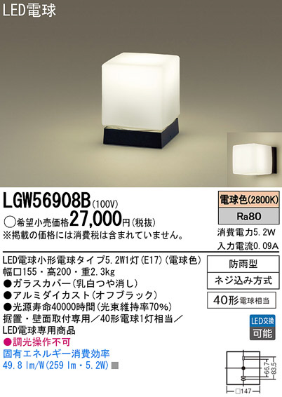Panasonic LED ¥¨¥¯¥¹¥Æ¥ê¥¢¡¦¥¢¥¦¥È¥É¥¢ LGW56908B