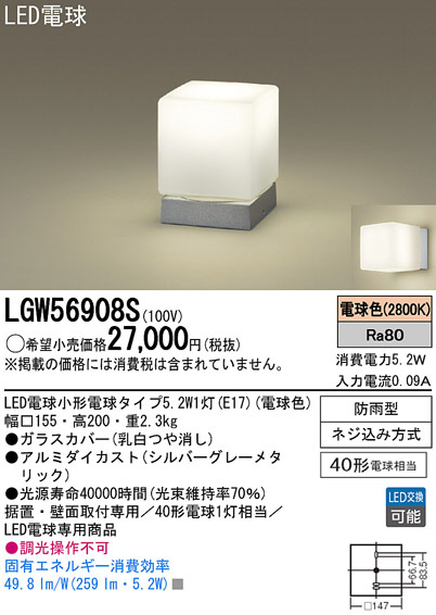 Panasonic LED ¥¨¥¯¥¹¥Æ¥ê¥¢¡¦¥¢¥¦¥È¥É¥¢ LGW56908S