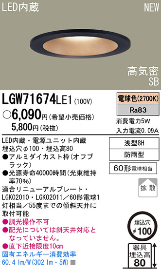 Panasonic LED ¥¢¥¦¥È¥É¥¢ ¥À¥¦¥ó¥é¥¤¥È LGW71674LE1