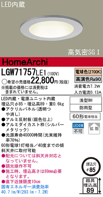 Panasonic LED ¥¢¥¦¥È¥É¥¢ ¥À¥¦¥ó¥é¥¤¥È LGW71757LE1