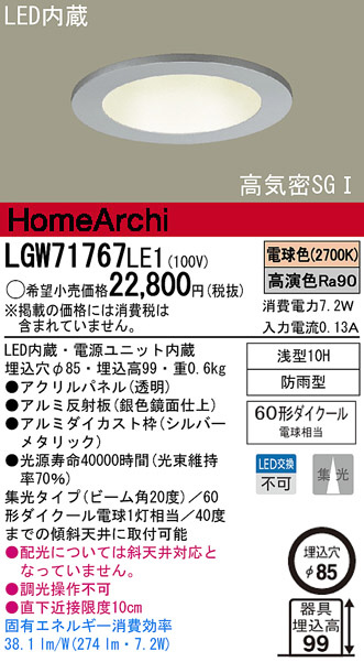 Panasonic LED ¥¢¥¦¥È¥É¥¢ ¥À¥¦¥ó¥é¥¤¥È LGW71767LE1