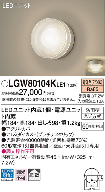 Panasonic LED ¥¨¥¯¥¹¥Æ¥ê¥¢¡¦¥¢¥¦¥È¥É¥¢ LGW80104KLE1