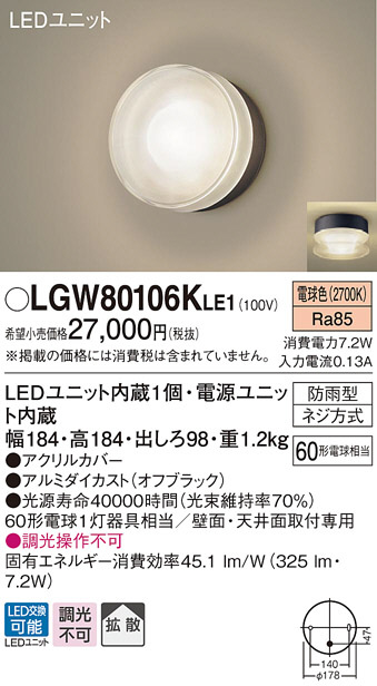 Panasonic LED ¥¨¥¯¥¹¥Æ¥ê¥¢¡¦¥¢¥¦¥È¥É¥¢ LGW80106KLE1