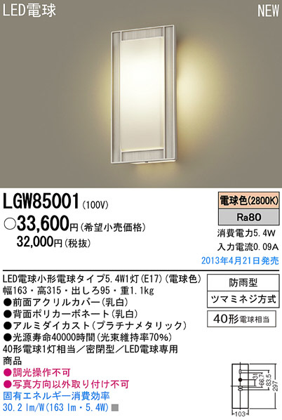 Panasonic LED ¥¢¥¦¥È¥É¥¢ LGW85001