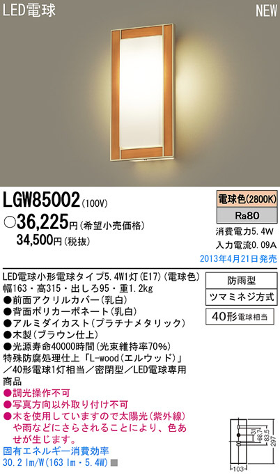 Panasonic LED ¥¢¥¦¥È¥É¥¢ LGW85002