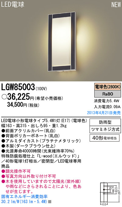 Panasonic LED ¥¢¥¦¥È¥É¥¢ LGW85003