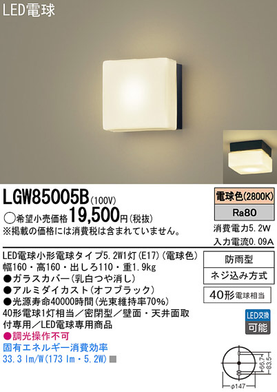 Panasonic LED ¥¨¥¯¥¹¥Æ¥ê¥¢¡¦¥¢¥¦¥È¥É¥¢ LGW85005B