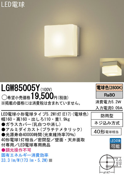 Panasonic LED ¥¨¥¯¥¹¥Æ¥ê¥¢¡¦¥¢¥¦¥È¥É¥¢ LGW85005Y