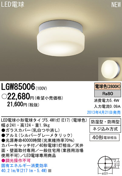 Panasonic LED ¥¢¥¦¥È¥É¥¢ LGW85006