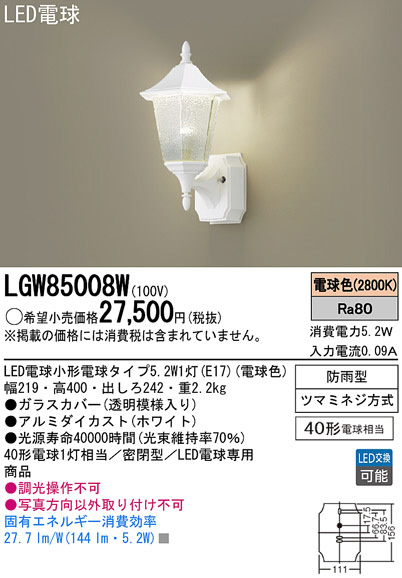 Panasonic LED ¥¢¥¦¥È¥É¥¢ LGW85008W