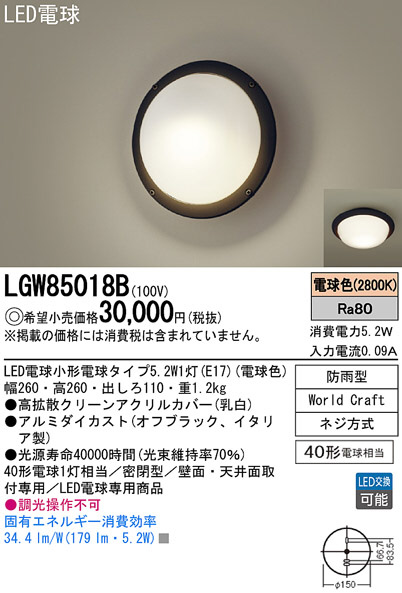 Panasonic LED ¥¨¥¯¥¹¥Æ¥ê¥¢¡¦¥¢¥¦¥È¥É¥¢ LGW85018B