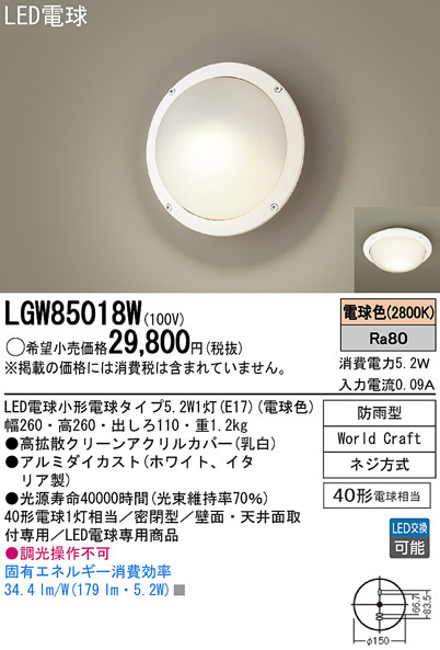Panasonic LED ¥¨¥¯¥¹¥Æ¥ê¥¢¡¦¥¢¥¦¥È¥É¥¢ LGW85018W