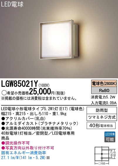 Panasonic LED ¥¨¥¯¥¹¥Æ¥ê¥¢¡¦¥¢¥¦¥È¥É¥¢ LGW85021Y