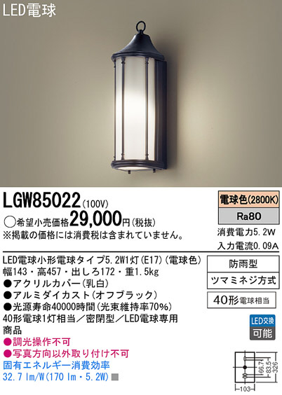 Panasonic LED ¥¨¥¯¥¹¥Æ¥ê¥¢¡¦¥¢¥¦¥È¥É¥¢ LGW85022