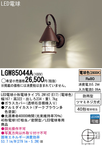 Panasonic LED ¥¨¥¯¥¹¥Æ¥ê¥¢¡¦¥¢¥¦¥È¥É¥¢ LGW85044A