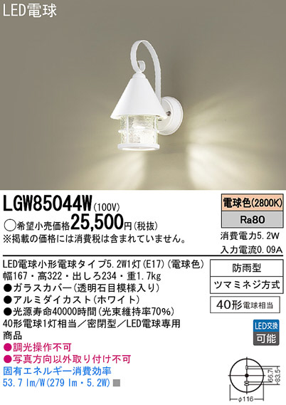 Panasonic LED ¥¨¥¯¥¹¥Æ¥ê¥¢¡¦¥¢¥¦¥È¥É¥¢ LGW85044W