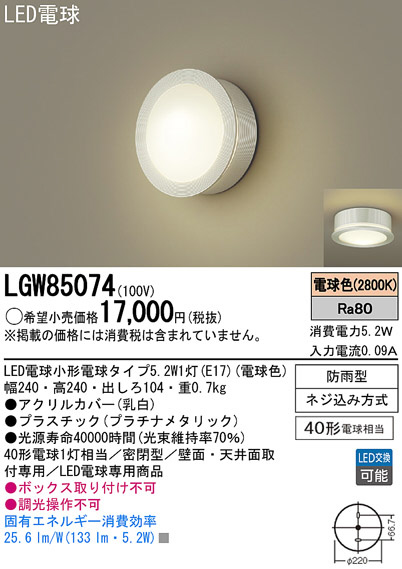 Panasonic LED ¥¢¥¦¥È¥É¥¢ LGW85074