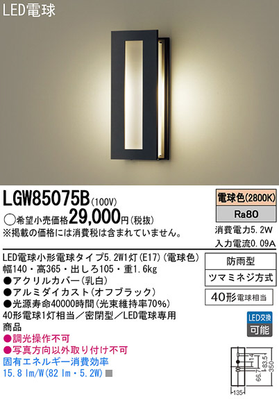 Panasonic LED ¥¨¥¯¥¹¥Æ¥ê¥¢¡¦¥¢¥¦¥È¥É¥¢ LGW85075B