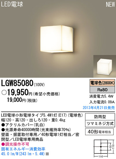 Panasonic LED ¥¢¥¦¥È¥É¥¢ LGW85080