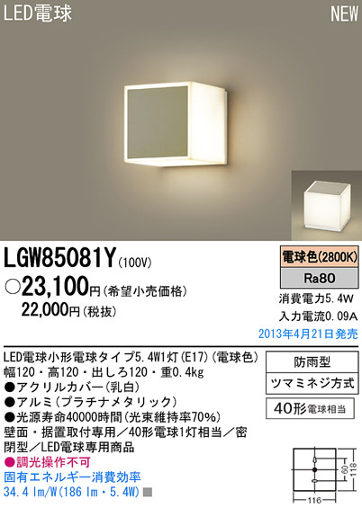 Panasonic LED ¥¢¥¦¥È¥É¥¢ LGW85081Y