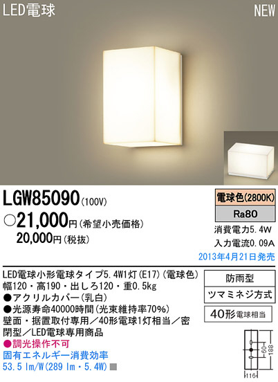 Panasonic LED ¥¢¥¦¥È¥É¥¢ LGW85090