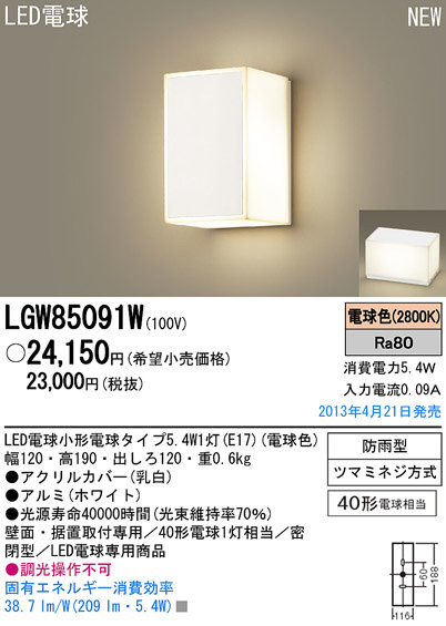 Panasonic LED ¥¢¥¦¥È¥É¥¢ LGW85091W