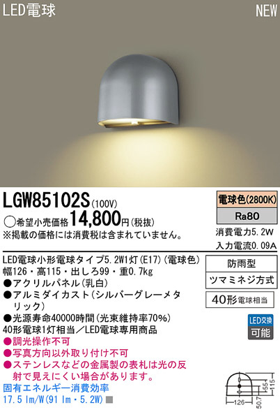 Panasonic LED ¥¢¥¦¥È¥É¥¢ LGW85102S