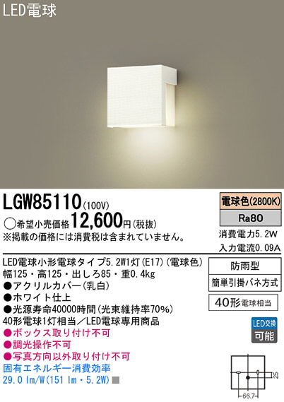 Panasonic LED ¥¢¥¦¥È¥É¥¢ LGW85110