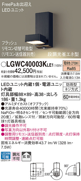 Panasonic ¥¨¥¯¥¹¥Æ¥ê¥¢¡¦¥¢¥¦¥È¥É¥¢ LGWC40003KLE1