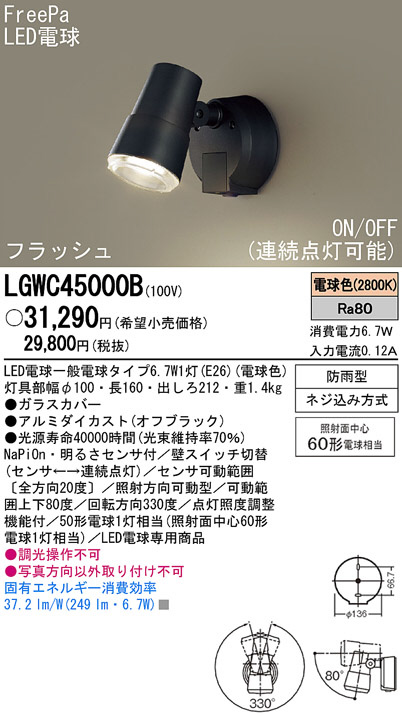 Panasonic LED ¥¢¥¦¥È¥É¥¢ LGWC45000B