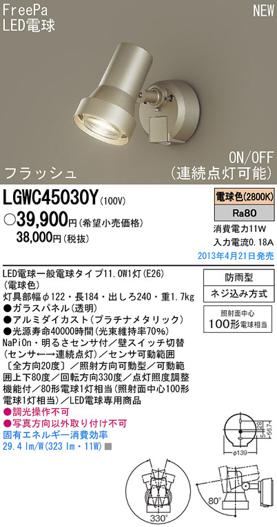 Panasonic LED ¥¢¥¦¥È¥É¥¢ LGWC45030Y