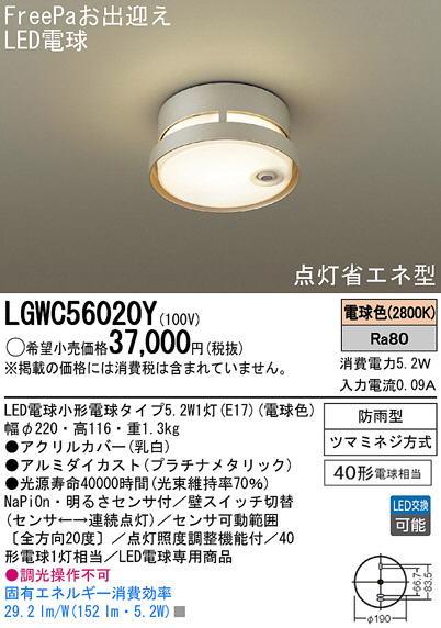 Panasonic LED ¥¨¥¯¥¹¥Æ¥ê¥¢¡¦¥¢¥¦¥È¥É¥¢ LGWC56020Y