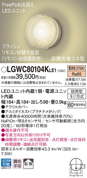 Panasonic LED ¥¨¥¯¥¹¥Æ¥ê¥¢¡¦¥¢¥¦¥È¥É¥¢ LGWC80104KLE1