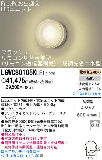 Panasonic LED ¥¢¥¦¥È¥É¥¢ LGWC80105KLE1