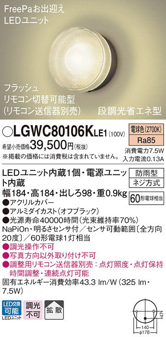 Panasonic LED ¥¨¥¯¥¹¥Æ¥ê¥¢¡¦¥¢¥¦¥È¥É¥¢ LGWC80106KLE1