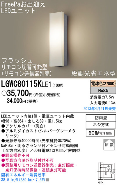 Panasonic LED ¥¢¥¦¥È¥É¥¢ LGWC80115KLE1