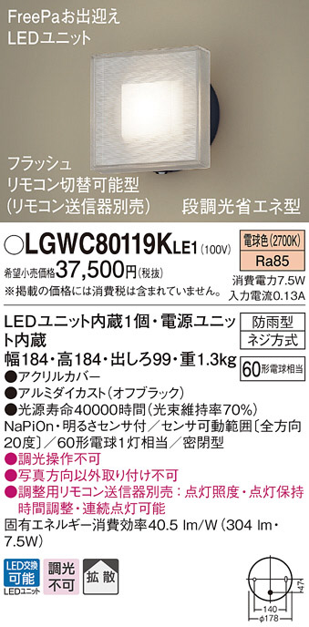 Panasonic LED ¥¨¥¯¥¹¥Æ¥ê¥¢¡¦¥¢¥¦¥È¥É¥¢ LGWC80119KLE1