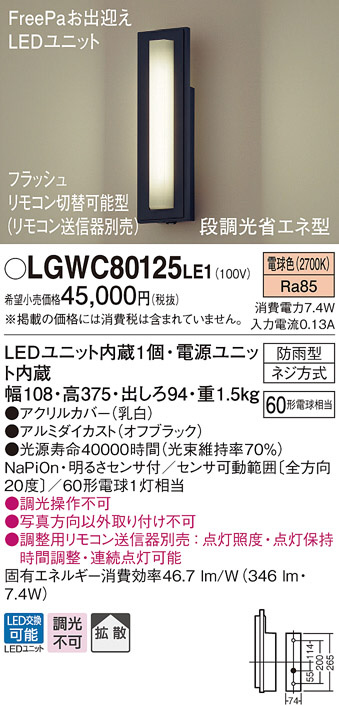 Panasonic LED ¥¨¥¯¥¹¥Æ¥ê¥¢¡¦¥¢¥¦¥È¥É¥¢ LGWC80125LE1
