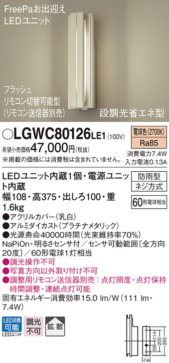 Panasonic LED ¥¨¥¯¥¹¥Æ¥ê¥¢¡¦¥¢¥¦¥È¥É¥¢ LGWC80126LE1