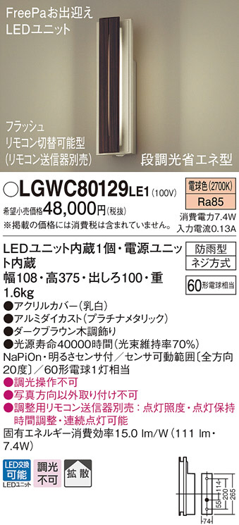 Panasonic LED ¥¨¥¯¥¹¥Æ¥ê¥¢¡¦¥¢¥¦¥È¥É¥¢ LGWC80129LE1