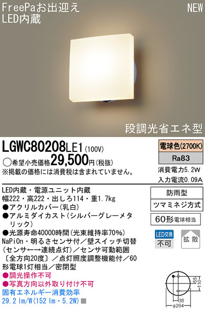 Panasonic LED ¥¢¥¦¥È¥É¥¢ LGWC80208LE1