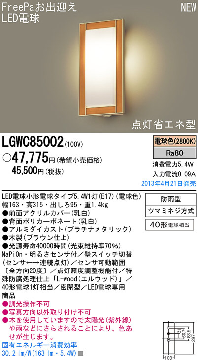 Panasonic LED ¥¢¥¦¥È¥É¥¢ LGWC85002