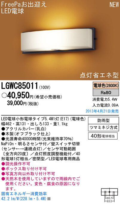 Panasonic LED ¥¢¥¦¥È¥É¥¢ LGWC85011