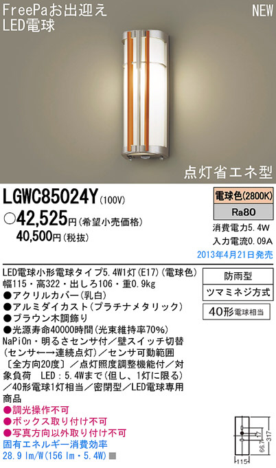 Panasonic LED ¥¢¥¦¥È¥É¥¢ LGWC85024Y