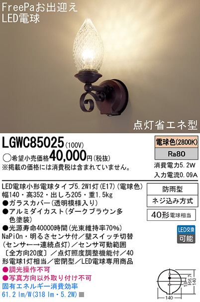 Panasonic LED ¥¨¥¯¥¹¥Æ¥ê¥¢¡¦¥¢¥¦¥È¥É¥¢ LGWC85025